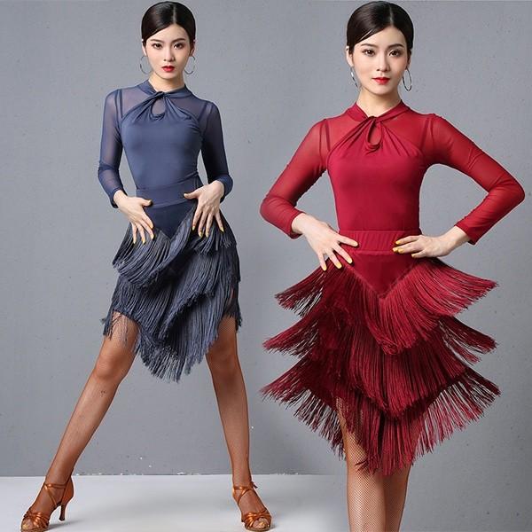 ラテンドレス 上着 スカート 2点セット 長袖 ラテンダンス ダンス衣装 演技服 ワンピース 練習着 ワルツ チャチャチャ ステージ衣装 フリンジ De060l6 イツモストア 通販 Yahoo ショッピング